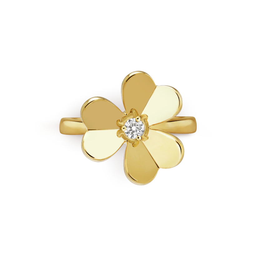 Frivole ring, 1 flower, small model, 18K yellow gold, round diamond; diamond quality DEF, IF to VVS.