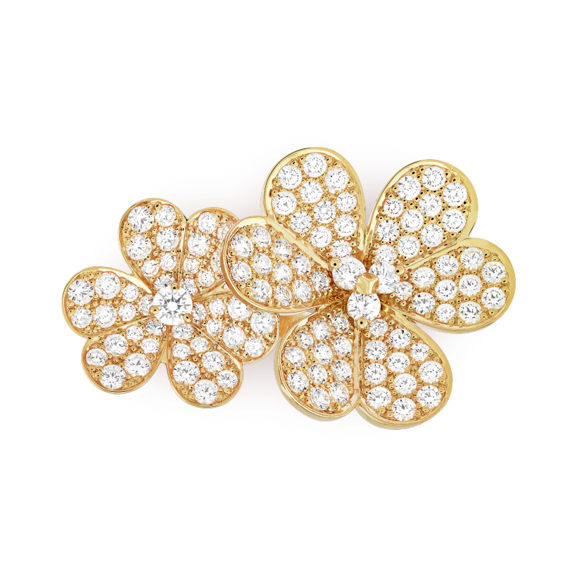 Like so many flowers dancing in the breeze, the Frivole® creations by Vthtan Clthteef & Arthtpels stand out with their graphic and airy aesthetic. Mirror-polished 18K gold or diamonds bestow a singular radiance upon heart-shaped petals.